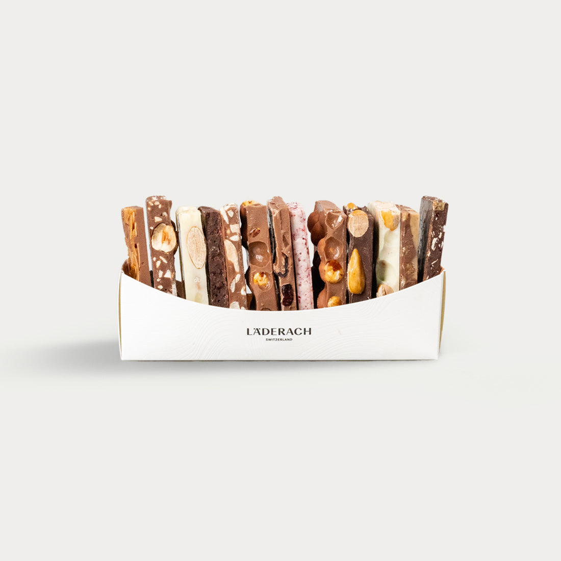 Set sail on a voyage of pure chocolate bliss with the FrischSchoggi boat. It’s not just chocolate; it’s a luxurious escape in every bite. The Läderach FrischSchoggi classic - a perfect gift. From fruity and fresh with white chocolate and raspberry pieces, classic with milk chocolate and caramelised Piedmontese hazelnuts or pure enjoyment with dark chocolate - there is something for everyone here. Our Läderach FrischSchoggi is made with love and only the best and freshest ingredients in Switzerland. (350g 0.73lbs)