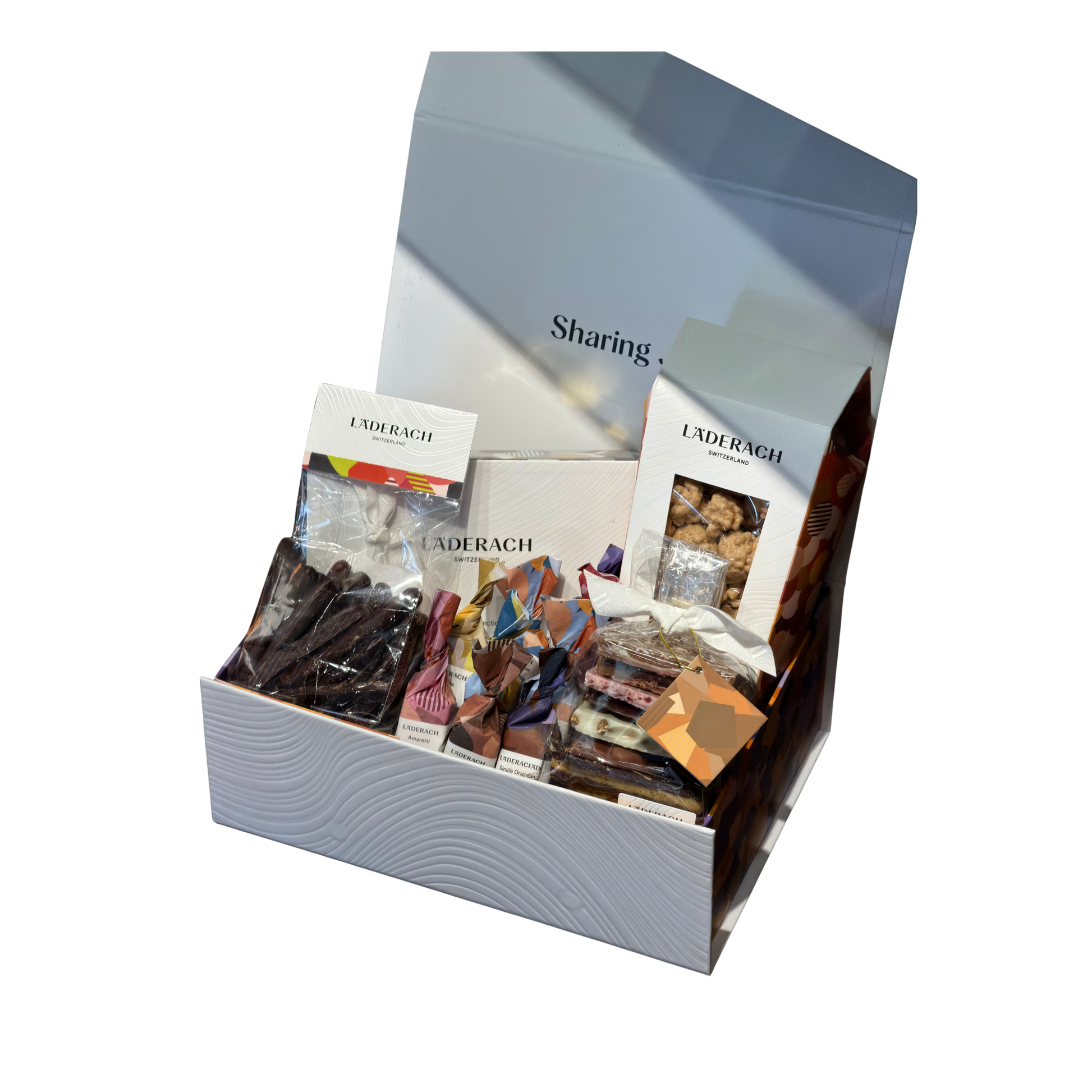 A delightful collection of Läderach’s finest Swiss chocolates, thoughtfully curated to bring joy and sweetness to any special occasion. Featuring a wide selection of our signature creations, this assortment makes the perfect gift for sharing, celebrating, and indulging in the very best of our products.