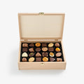 A fine selection of 48 delicate pralines packed in a beautiful wooden box. The box contains the following varieties of pralines: Honey-Nougat carré, Almond à l'ancienne, Moccatine, Walnut Marzipan, Le Noir, Almond blond, Piedmontese, Caramel Triangle, Trois Frères, Nut Trio, Nougatine, Walnut Branchli, Mousse Milk, Rigoletto, Pistache-Gianduja, Läderach Square, Nougat-Truffle and Dulce de Leche. (560g)